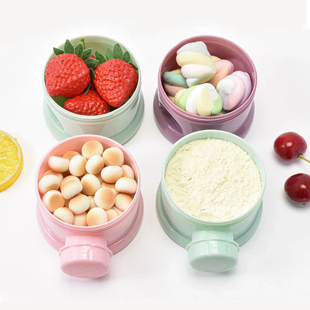 Each layer of this dispenser holds more than just formula; pack snacks, nuts, fruits, oats, or sweets to keep your little one happily nourished. The airtight compartments preserve the contents’ flavour and texture, ensuring your baby’s food remains delicious and ready to eat at all times.