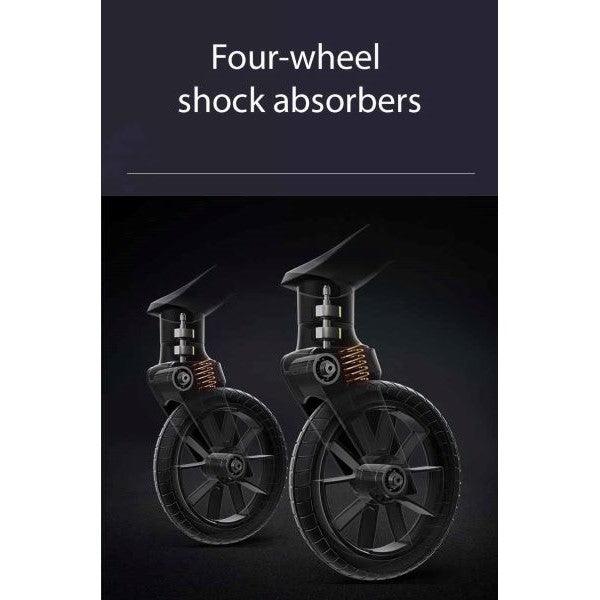 Shock-Absorbing Wheels: The 360° rotating wheels, crafted from PU, act as shock absorbers, providing a smooth and comfortable ride while effortlessly cushioning bumps from uneven terrain.