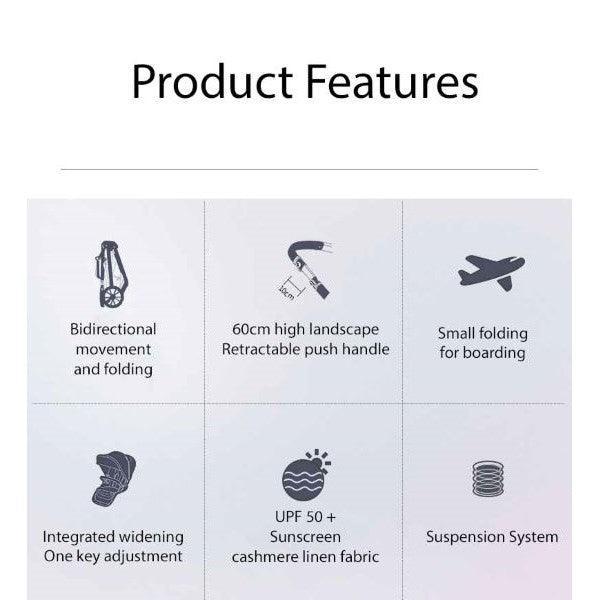 Smart Folding Design: Convenience is key! The stroller is easy to fold and store, making it the ideal travel companion. The adjustable push handle caters to different height requirements.