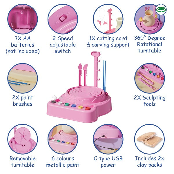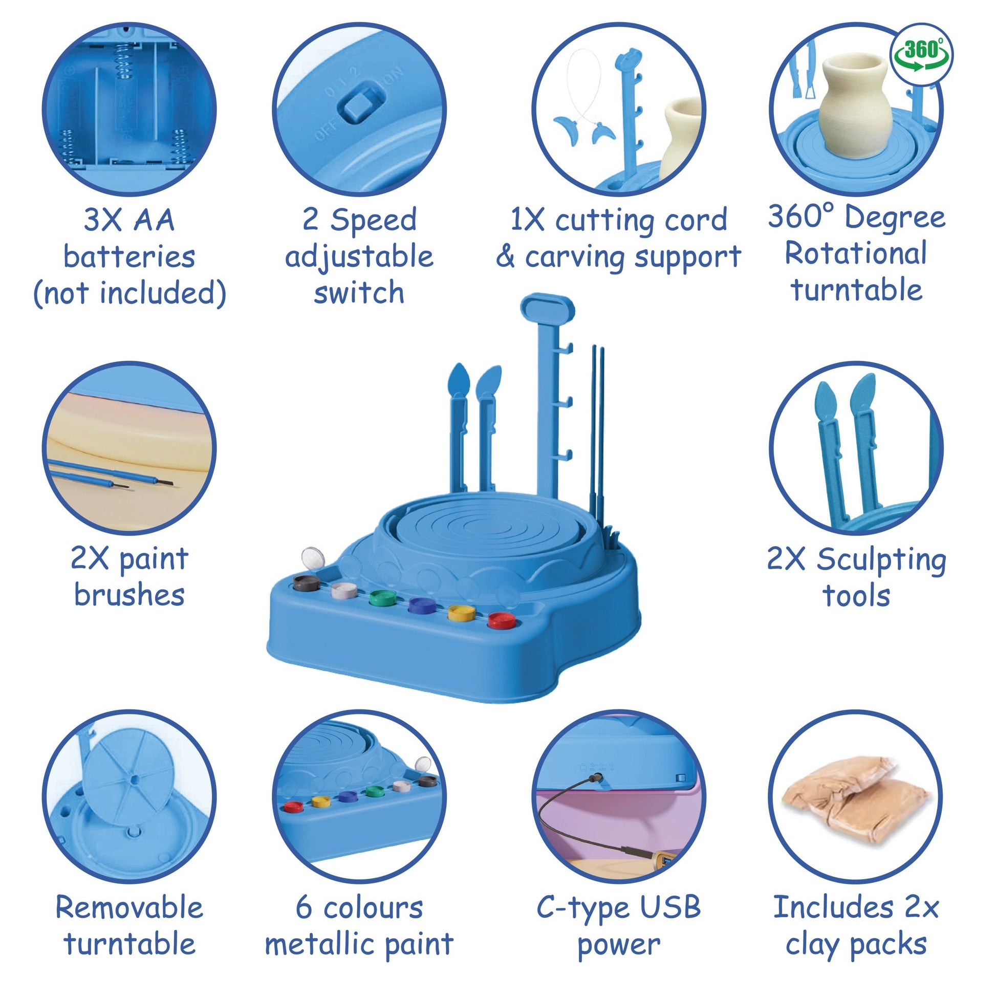 - 1 x Kid’s Crafty Clay Pottery Playset