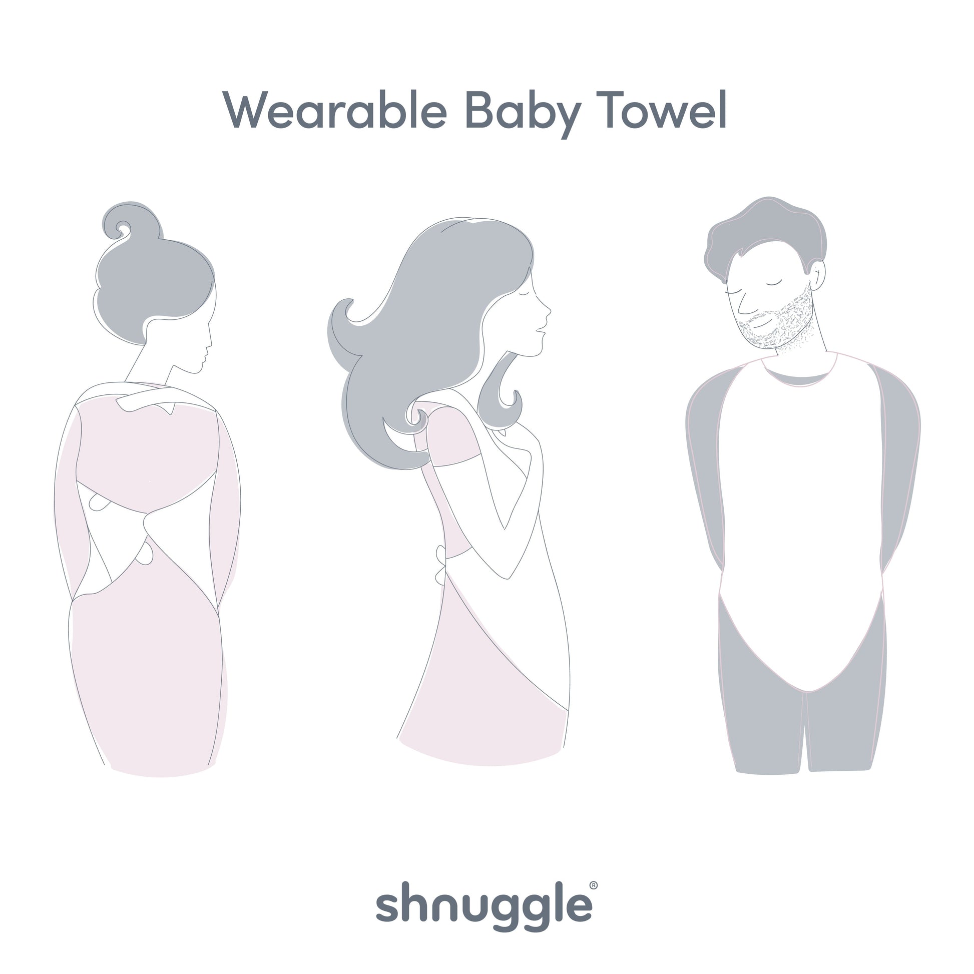 The Shnuggle Wearable Baby Towel keeps you dry and your hands free to concentrate on baby, for a stress free and cosy bathtime. The wearable design frees up both hands to lift baby from the bath and wrap them in the towel with ease.
