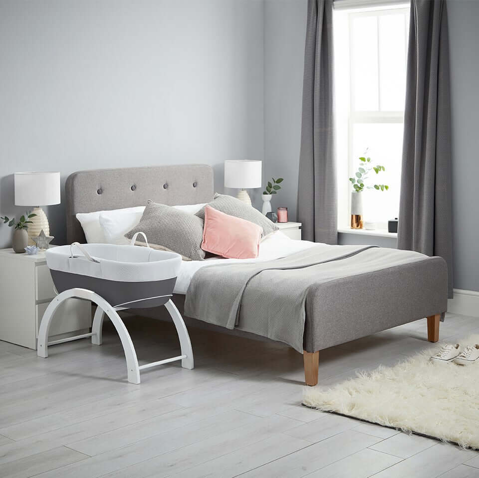 The modern, stylish alternative to the traditional moses basket. The Shnuggle Dreami Moses Basket is 45% longer than traditional baskets.