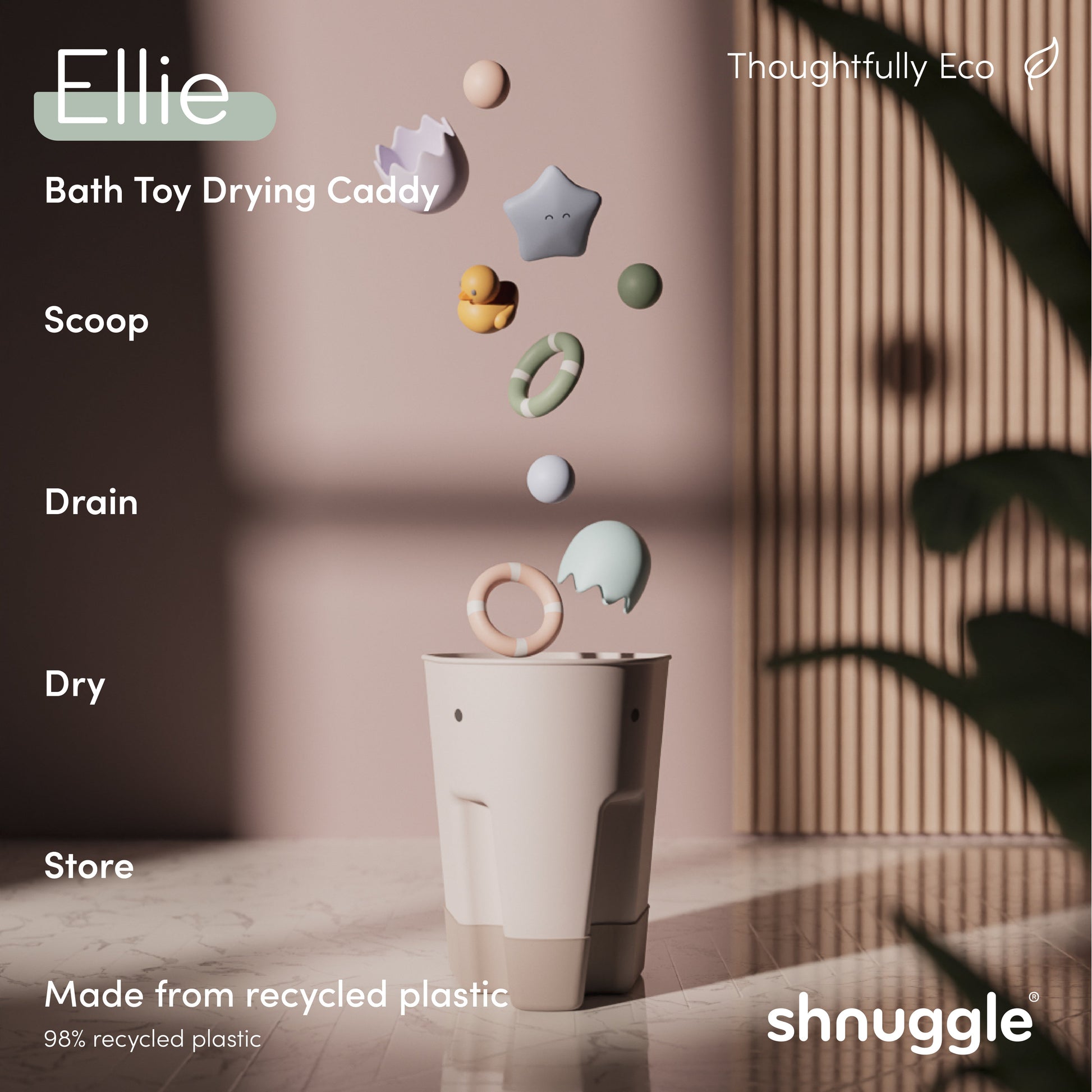 Scoop, drain, dry and store your bath toys neatly away with Ellie, the Bath Toy Drying Caddy - a clever drying and storage solution for all your little one's bath toys.
