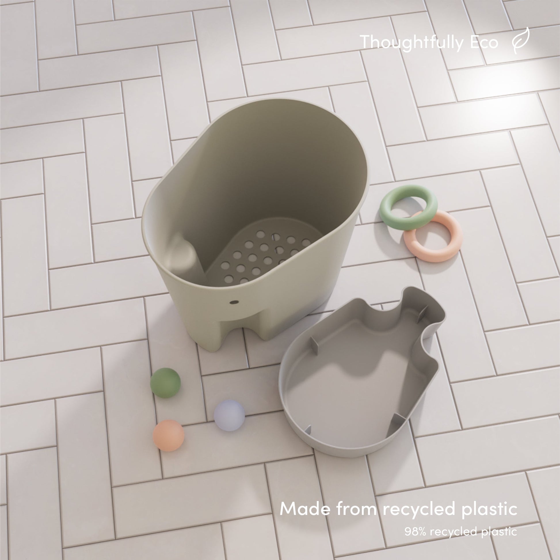 Made from 98% recycled plastic, this thoughtfully eco caddy keeps all your bath toys dry and neatly stored away until your little one's next bath.