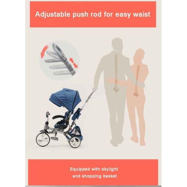 Adjustable Canopy: With a convenient adjustable canopy, this trike provides shade and boasts a spacious skylight, ensuring parents can keep a watchful eye on their little one at all times.