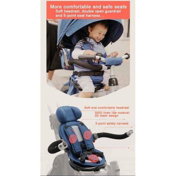 6-Mode Functionality: From forward-facing to rear-facing modes, push mode with footrest, auxiliary cycling mode, freecycling mode, to exploration mode, this trike has it all, adapting to different stages of your child's growth.